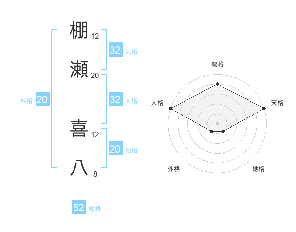 棚瀬 喜八さんの総格は52画の4点!