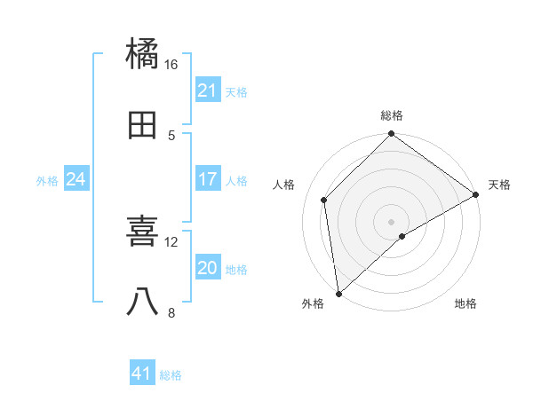 橘田 喜八さんを姓名の画数から五運を鑑定