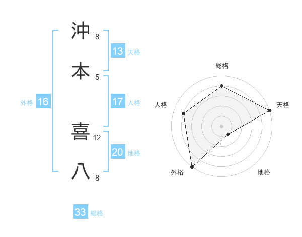 沖本 喜八さんの総格は33画の4点!