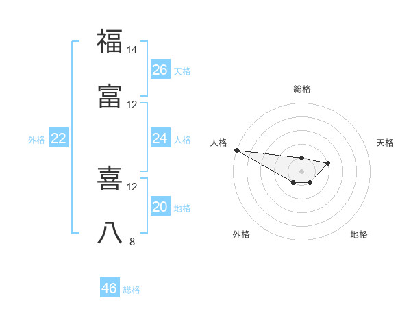福富 喜八さんを姓名の画数から五運を鑑定