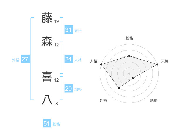 藤森 喜八さんを姓名の画数から五運を鑑定
