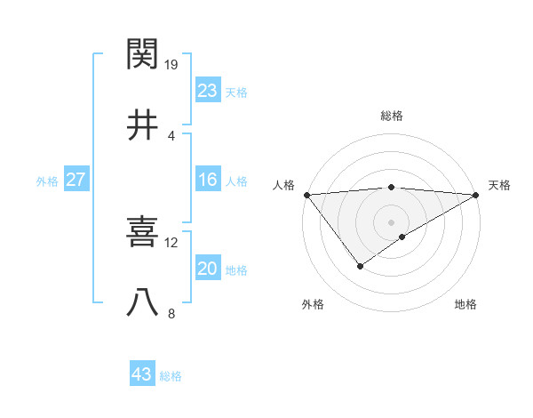 関井 喜八さんの天格は23画の5点!