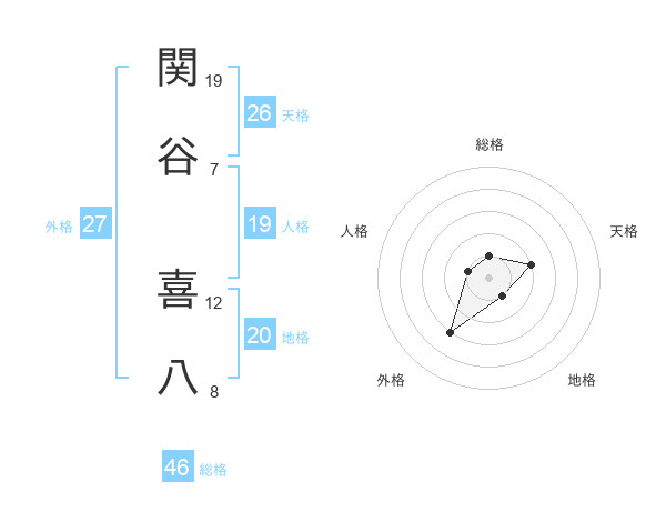 関谷 喜八さんを姓名の画数から五運を鑑定