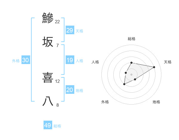 鰺坂 喜八さんの総格は49画の2点!