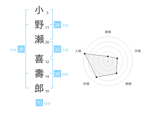 小野瀬 喜壽郎さんの地格は36画の3点!
