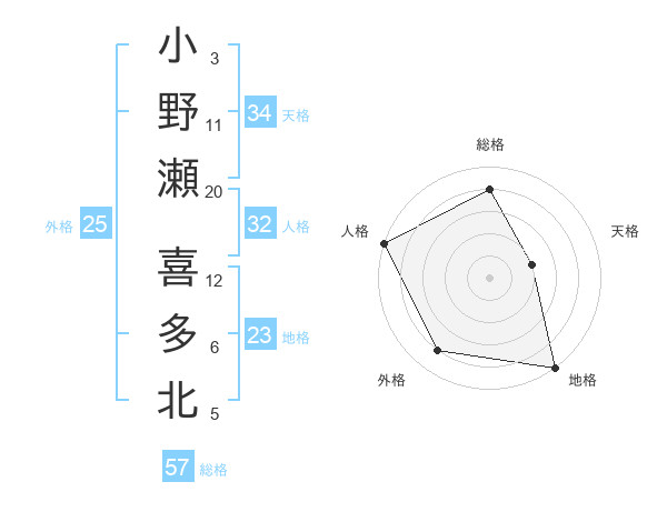 小野瀬 喜多北さんを姓名の画数から五運を鑑定