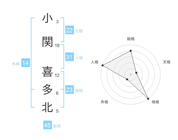 小関 喜多北さんを姓名の画数から五運を鑑定