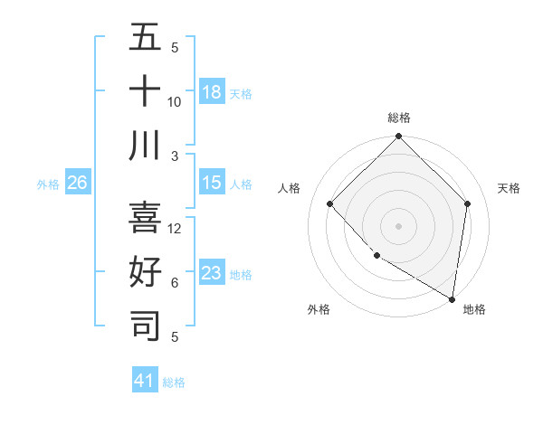 五十川 喜好司さんを姓名の画数から五運を鑑定