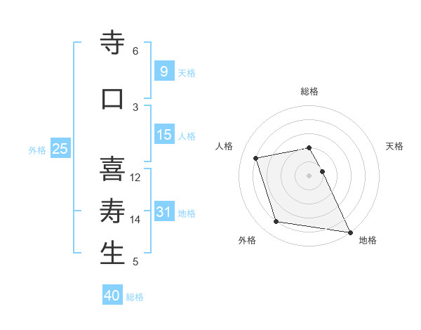 寺口 喜寿生さんの総格は40画の2点!