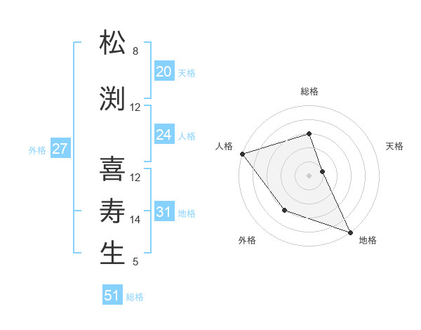 松渕 喜寿生さんの総格は51画の3点!