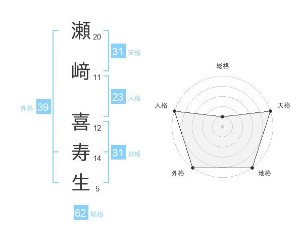 瀬﨑 喜寿生さんの地格は31画の5点