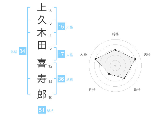 上久木田 喜寿郎さんを姓名の画数から五運を鑑定