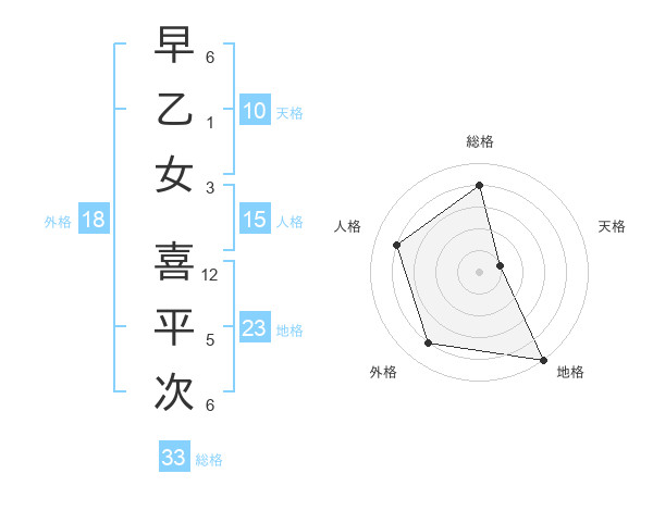 早乙女 喜平次さんの総格は33画の4点!