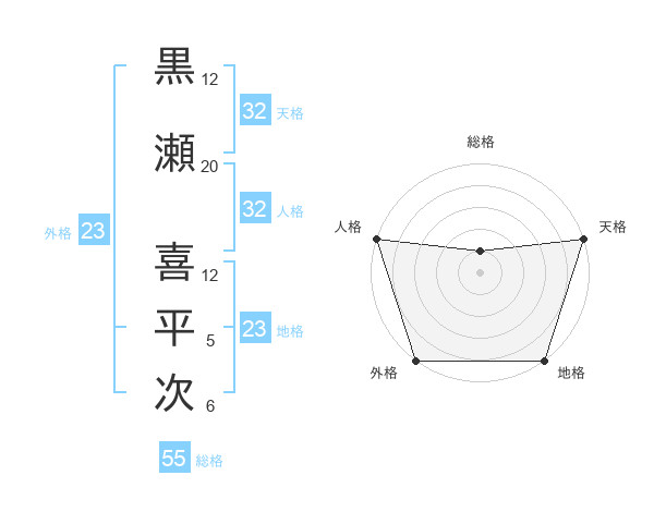 黒瀬 喜平次さんを姓名の画数から五運を鑑定