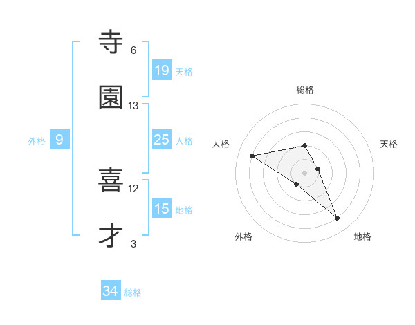 寺園 喜才さんの総格は34画の2点!