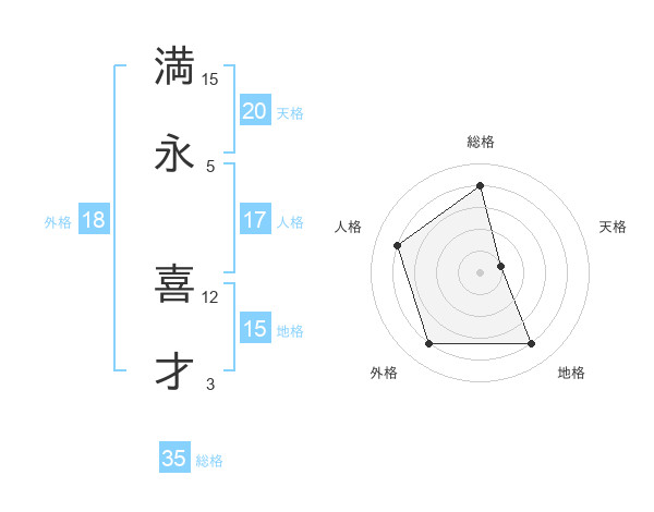 満永 喜才さんの総格は35画の4点!