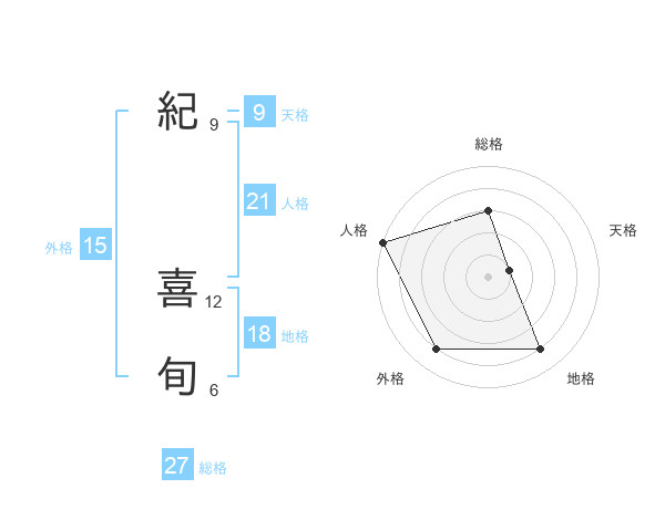 紀 喜旬さんの総格は27画の3点!
