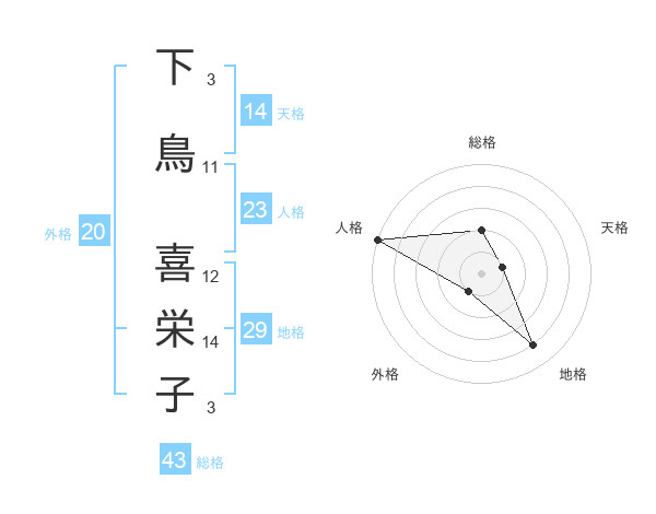 下鳥 喜栄子さんの総格は43画の2点!