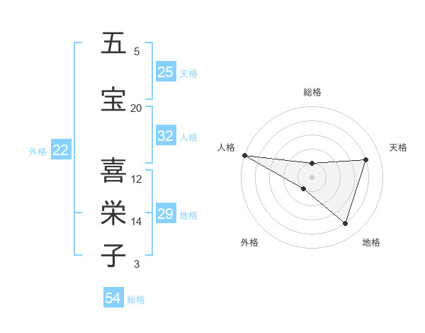 五宝 喜栄子さんの外格は22画の1点!