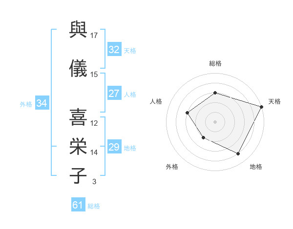 與儀 喜栄子さんを姓名の画数から五運を鑑定