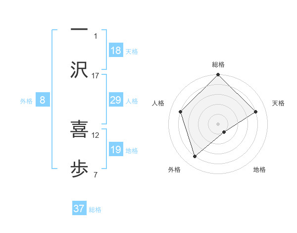 一沢 喜歩さんの総格は37画の5点!