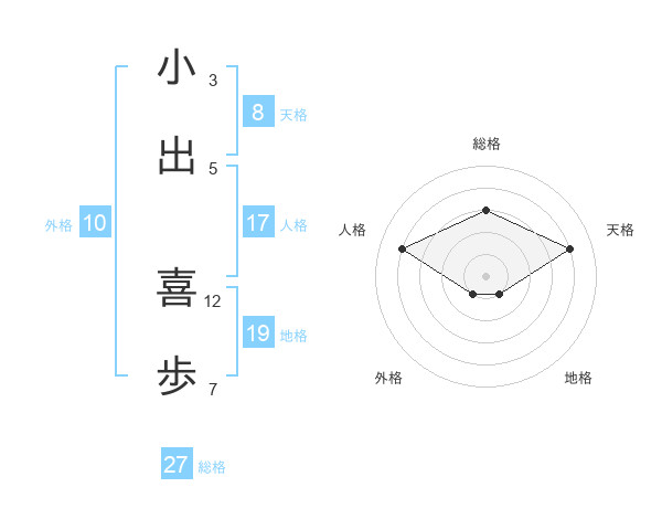 小出 喜歩さんを姓名の画数から五運を鑑定