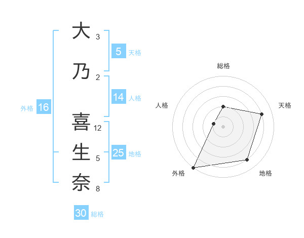 大乃 喜生奈さんの外格は16画の5点!