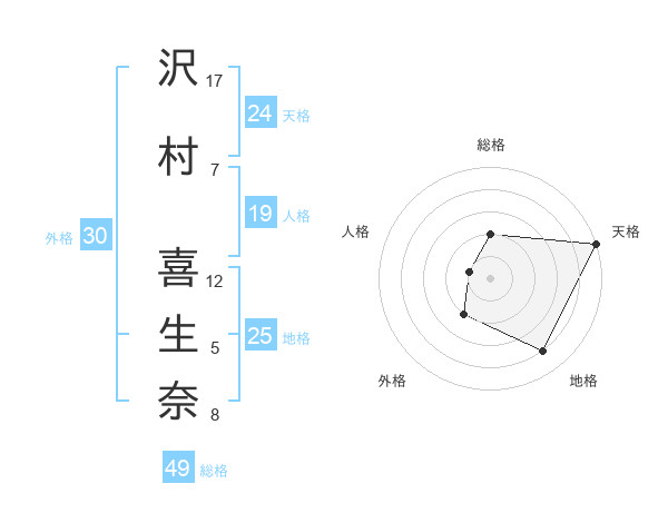 沢村 喜生奈さんを姓名の画数から五運を鑑定
