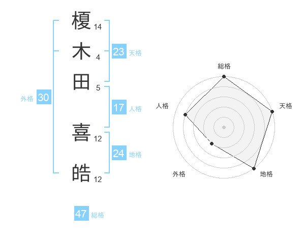 榎木田 喜皓さんを姓名の画数から五運を鑑定