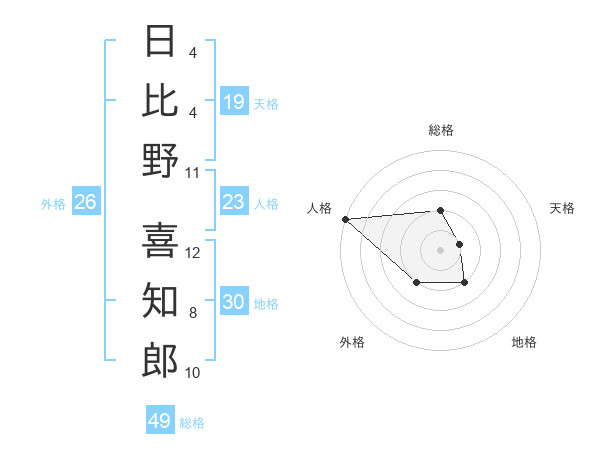日比野 喜知郎さんを姓名の画数から五運を鑑定
