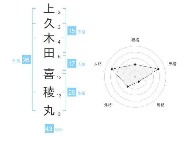 上久木田 喜稜丸さんを姓名の画数から五運を鑑定