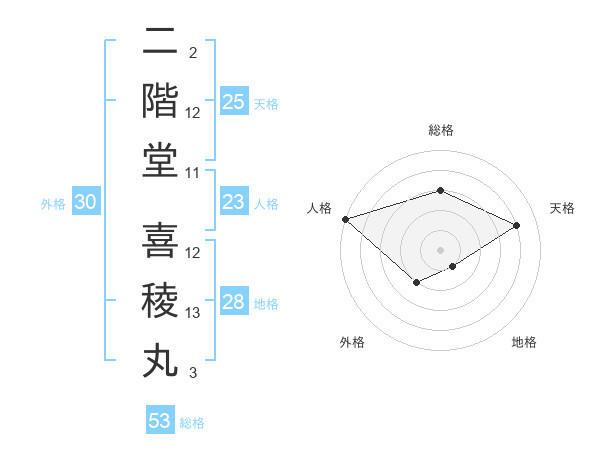 二階堂 喜稜丸さんの人格は23画の5点!