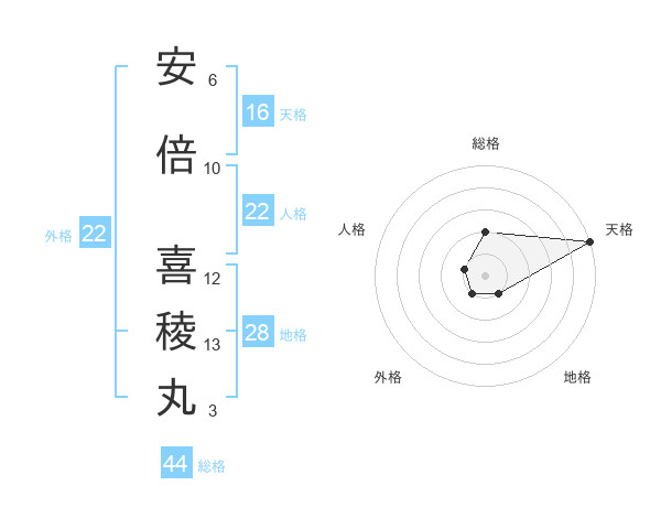 安倍 喜稜丸さんを姓名の画数から五運を鑑定
