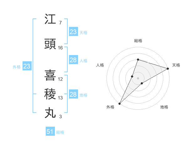 江頭 喜稜丸さんを姓名の画数から五運を鑑定
