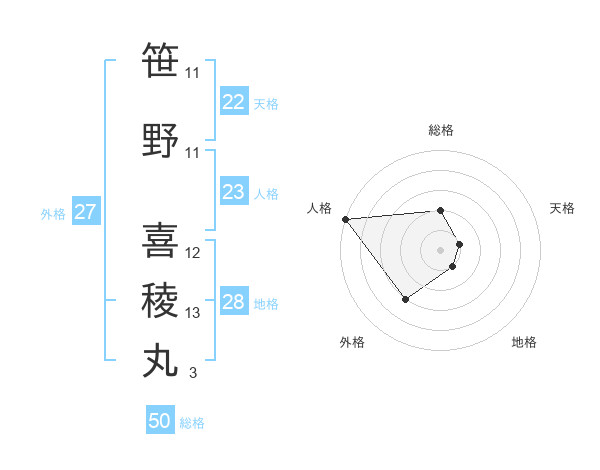 笹野 喜稜丸さんを姓名の画数から五運を鑑定
