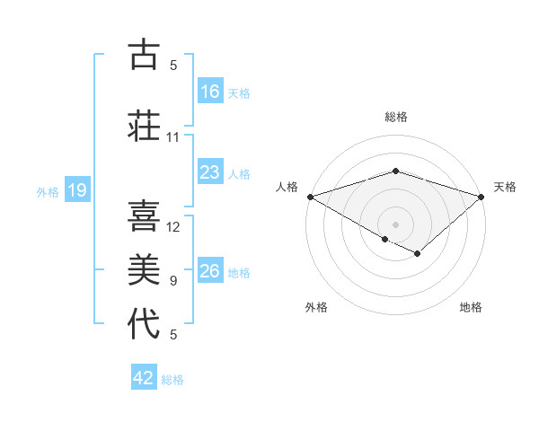 古荘 喜美代さんを姓名の画数から五運を鑑定