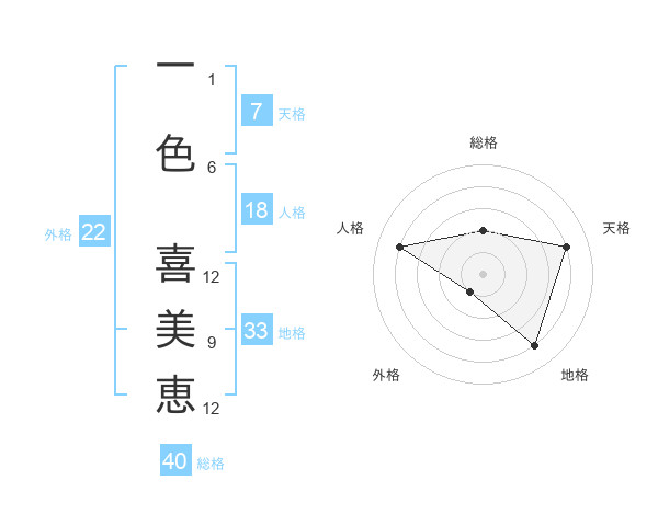 一色 喜美恵さんの外格は22画の1点!
