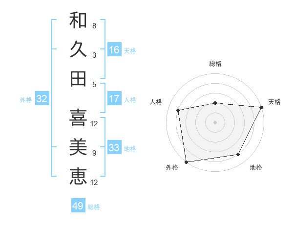 和久田 喜美恵さんを姓名の画数から五運を鑑定