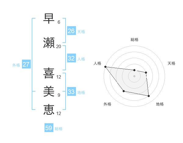 早瀬 喜美恵さんを姓名の画数から五運を鑑定