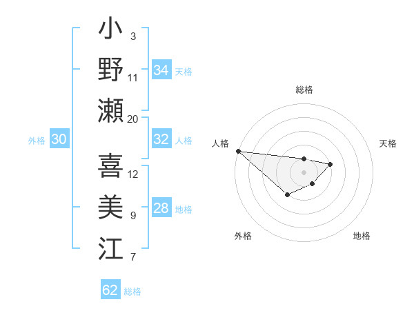 小野瀬 喜美江さんを姓名の画数から五運を鑑定