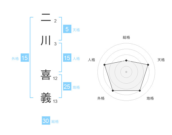 二川 喜義さんの総格は30画の2点!