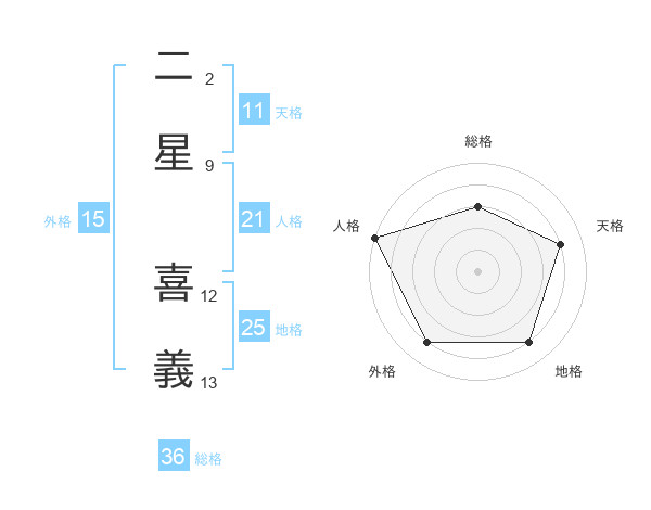 二星 喜義さんの人格は21画の5点!