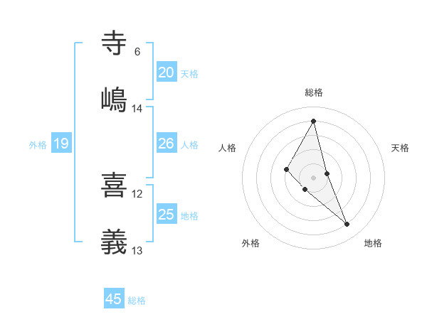 寺嶋 喜義さんを姓名の画数から五運を鑑定