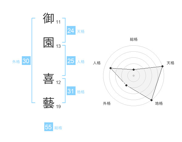 御園 喜藝さんを姓名の画数から五運を鑑定