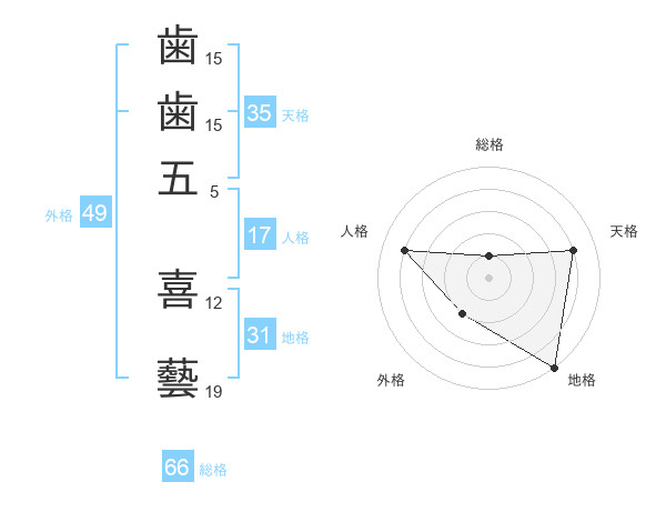 歯歯五 喜藝さんの総格は66画の1点!