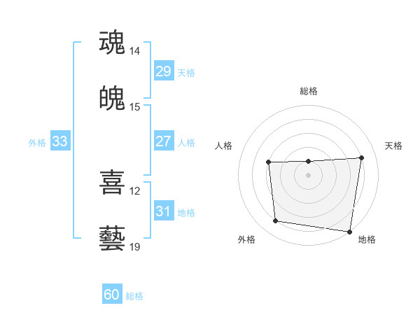 魂魄 喜藝さんの外格は33画の4点!