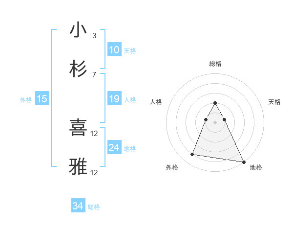 小杉 喜雅さんの総格は34画の2点!