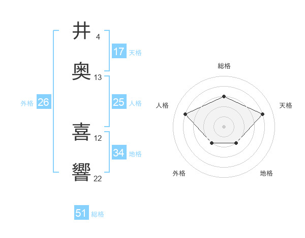井奥 喜響さんを姓名の画数から五運を鑑定