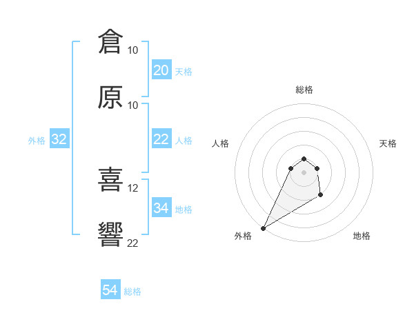 倉原 喜響さんの総格は54画の1点!