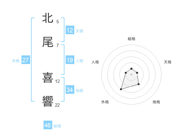 北尾 喜響さんを姓名の画数から五運を鑑定